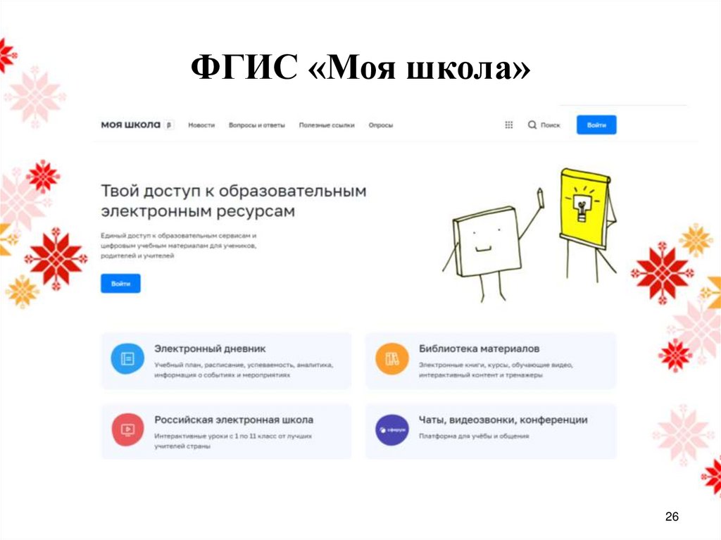 Т.е. «Моя школа» объединяет в себе множество сервисов и выступает в роли единой государственной информационной системы РФ для реализации образовательных программ всех уровней основного образования.