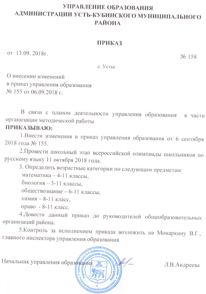 Изменения в приказ об организации школьного этапа ВсОШ