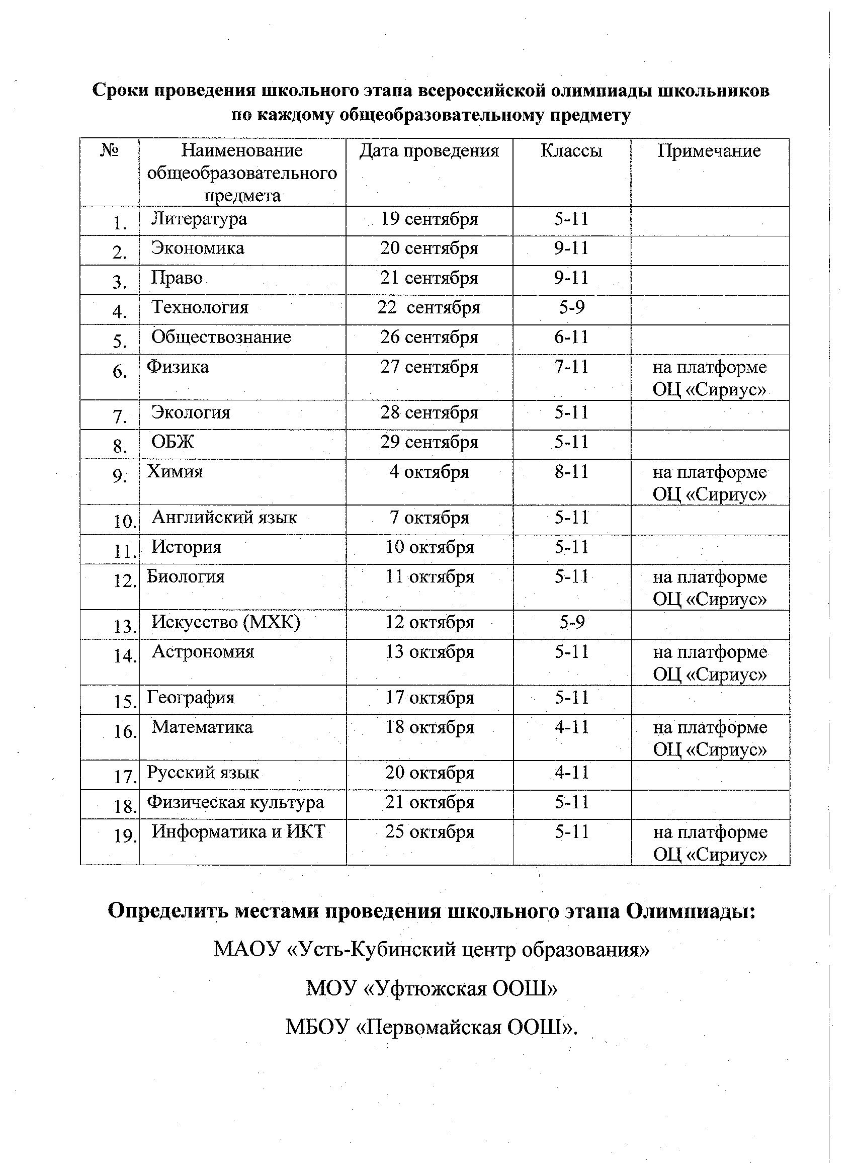 График и площадки проведения школьного этапа ВсОШ в 2022-2023 учебном году